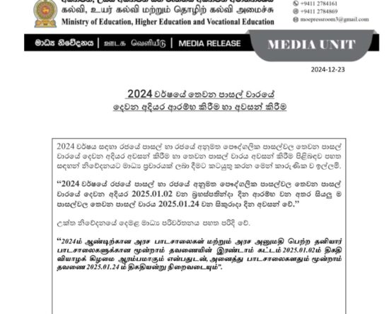 The Ministry of Education has announced that the second phase of the third term for the 2024 academic year will […]
